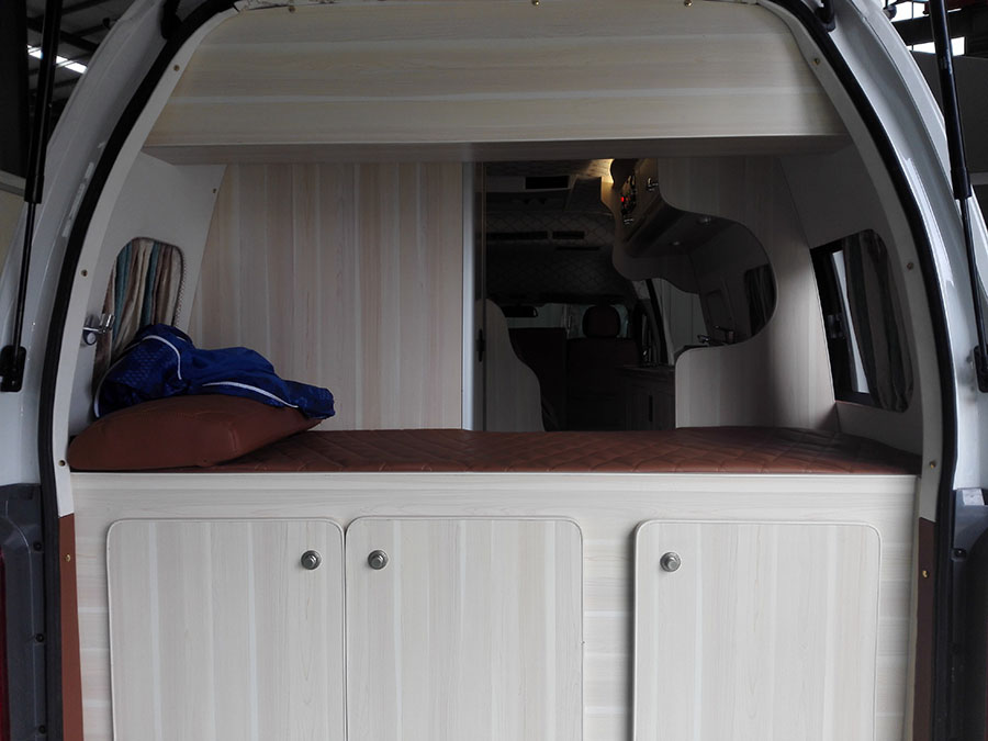 | 外觀 | 整車(chē)隱私玻璃貼膜 | 內(nèi)裝 | 車(chē)輛后部雙人床/床下儲(chǔ)物柜/床墊 |