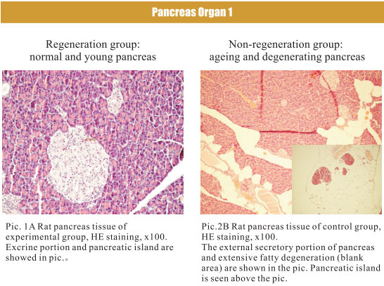 Laboratory rats were reared in a standard environment growing to 300 days old (beginning of the aging), then were divided into two groups, one was test group (regenerative nutritional group) fed with standard nutritional food mixed with regenerative substances; the other was control group (non-regenerative nutritional group) fed with the same standard nutritional food, plus the same amount of water instead of regenerative substances. Continue to rear them in standard environment.