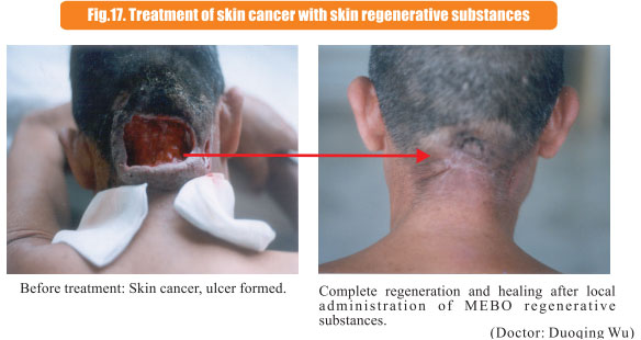 The Clinical practices by which many hospitals treated skin cancers effectively verify that we have overcome skin squamous carcinoma clinically. Sooner or later we will overcome other kinds of cancers. We are researching and developing injection of regenerative substances products. We found that curing of skin cancer owned to the direct external use of regenerative substances. In this way of direct contact, cancer tissues can obtain a lot of regenerative substances, resulting in quick control of cancer cells. But for the internal organs, because of the restriction of absorbed amount, can not get enough regenerative substances, therefore there will not be clinical effect as good as in skin cancer treatment. So, developing various techniques that increase supply of regenerative substances for target interior organs might be effective approach to accelerate the overcoming of cancers.