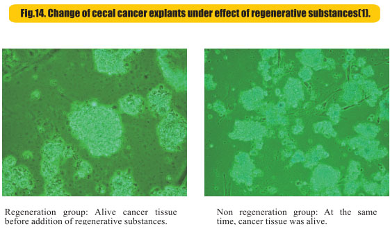 2. According to the dynamic changes of cellular organelles in the research in which regenerative substances exerted an effect on cancer cells, we consider that proliferation and differentiation law of cancer cells is completely different from that of normal cells, in that conditions that can make normal cells proliferate and differentiate will render cancer cells to death.