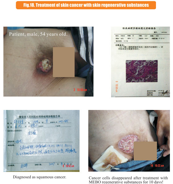 6. Replication of the skin cancer treatment: Adenoma was cured in 52 days; skin squamous cell carcinoma was cured in one month. (See fig.17-18)