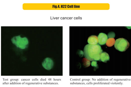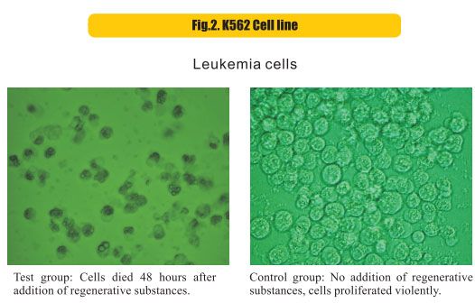 1) Culture test of cancer cells: Selected several cancer cell lines (different types), cultured them in vitro respectively, and add a certain amount of regenerative substances; the cancer cells died in 48 hours. (See Fig.2-6)