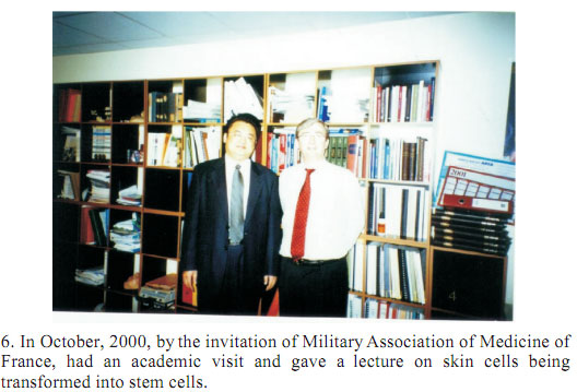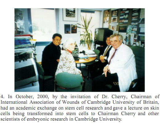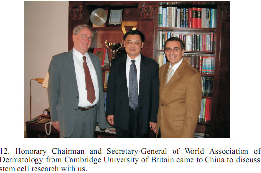 To emphasize its importance for scientific research all over the world, in the website of KARGER: "revolutionary and amazing"was commented. As a result, this book evoked a worldwide repercussion; some famous life scientists from Germany, Britain, and the United States came to China to visit us on purpose for discussion about stem cell research. Swedish National Television Station entrusted by Swedish National Committee of Sciences came to China especially for a visit. Stanford University of United States invited me especially for the special subject lecture. Some Professors of dermatology from Harvard University of the United States especially came to my home to discuss academic issues (some photos about academic communications in that time).