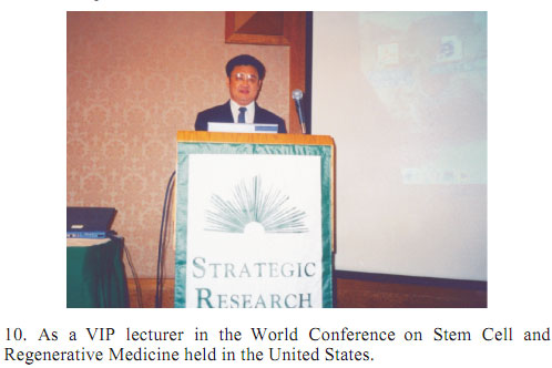After KARGER published my first monograph book about clinical application of regenerative medicine, great attention of many scientists from the United States and other western countries was drawn. Some scientists began to self-examine their past research work, and meanwhile tried to discard the old approach for ESC research to follow the way of transforming somatic cells into stem cells, for example, Japanese scientists reported an advance about somatic cells being transformed into analogous stem cells through re-programming in 2006. Although there was actually no stem cell transformed successfully in their research, and the 'false' stem cells ---'resembling cancer cells' were produced, this indicated that they began to follow our research direction by transforming somatic cells into stem cells. In 2007, scientists from Japan and the United States simultaneously applied this research result to human skin cell experiments, and obtained the same results. As a result, with lavish praise from some famous journals, they even asserted that they realized the transformation of stem cells from somatic cells, which set off an upsurge on transforming somatic cells into stem cells worldwide. On the other hand, several embryo scientists, headed by Father of Dolly the Sheep declared they will abandon the ESC research and enter the above-mentioned field of somatic cells transforming into 'stem cells'. We, as the first ones who achieved the induction of stem cells from somatic cells, are very appreciated of their change.