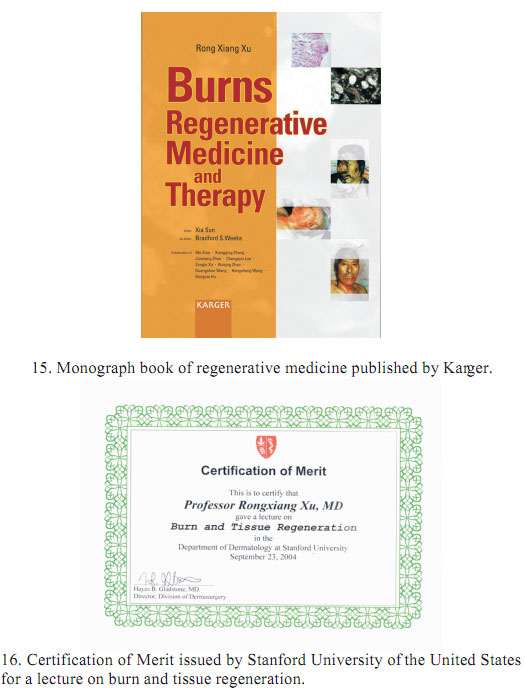 Although we repeatedly explained and popularized the in vivo somatic cell transformation into stem cell on various national and international conferences, the raging waves of international ESC research still exerted a great and extensive impact on the life science research community. ESC research laboratories were established in many universities and hospitals, all of them are going toward the same dream of the success of ESC research. In view of this situation, in August, 2002, we held a large press conference for our great and extensive achievements in our own life science research programs, and declared that we already successfully realized the whole process in which somatic cells (potentially regenerative cells, PRCs) can be transformed into stem cells and then regenerate the organs, displayed the materials of cloned tissues and organs, and earnestly announced that we would complete regeneration of all tissues and organs in human body in 5 years. In the meanwhile, a public hearing organized by Ministry of Science and Technology of People's Republic of China was held and attended by Academicians of Academy of Sciences of China. Shortly after that, I was invited to attend two international conferences, one was the International Conference on Stem Cells and Regenerative Medicine held in the United States in 2002, the other was Asia Pacific Stem Cells and Cloning Summit held in Singapore in 2003. In the two Conferences, as the invited guest, I presented special speeches on how to clone tissues and organs from somatic cells, and the clinical application for treating traumas and gastrointestinal ulcers. In 2004, KARGER in Switzerland, one of the world's famous medical publishers, officially published my English regenerative medicine monograph book---'Burns Regenerative Medicine and Therapy'.
