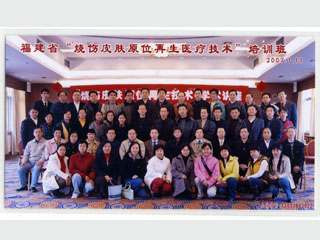 2007年1月12日~14日,由中國(guó)中西醫(yī)結(jié)合學(xué)會(huì)燒傷專委會(huì)主辦,福建省人民醫(yī)院承辦的福建省燒傷皮膚原位再生醫(yī)療技術(shù)規(guī)范化應(yīng)用培訓(xùn)班暨福建省中西醫(yī)結(jié)合燒傷專委會(huì)籌委會(huì)在福州市舉行。來(lái)自福建省人民醫(yī)院、福建省中醫(yī)學(xué)院附屬第二人民醫(yī)院、南京軍區(qū)福州總醫(yī)院及福州、廈門、漳州、泉州、龍巖三明、莆田等26家省、地市、區(qū)、縣各級(jí)醫(yī)院的近60名院長(zhǎng)、科主任、專家和相關(guān)業(yè)務(wù)骨干參加了學(xué)習(xí)班及福建省中西醫(yī)結(jié)合燒傷專委會(huì)籌備會(huì)議。福建省人民醫(yī)院院長(zhǎng)鄭健到會(huì)祝賀,學(xué)習(xí)班開(kāi)始前舉行了簡(jiǎn)短的開(kāi)幕式,福建省人民醫(yī)院外科主任黃小賓主持會(huì)議并致開(kāi)幕詞,他在致詞中對(duì)生命再生科學(xué)的創(chuàng)立者、我國(guó)著名生命科學(xué)家、醫(yī)學(xué)家徐榮祥教授近年來(lái)在生命再生科學(xué)領(lǐng)域所取得的重大科研成果及人民網(wǎng)、新華網(wǎng)等國(guó)內(nèi)各大媒體近期長(zhǎng)篇報(bào)道徐榮祥教授發(fā)明的皮膚及胃腸等器官原位再生復(fù)原技術(shù)獲得美國(guó)專利等新聞給予了高度的評(píng)價(jià)。開(kāi)幕式結(jié)束后,與會(huì)代表合影留念后學(xué)術(shù)活動(dòng)開(kāi)始,中國(guó)中西醫(yī)結(jié)合學(xué)會(huì)燒傷專委會(huì)常委、北京美寶燒傷創(chuàng)瘍研究所副所長(zhǎng)、臨床部王洪生主任應(yīng)邀到會(huì)以生命再生科學(xué)研究新進(jìn)展及燒傷皮膚原位再生醫(yī)療技術(shù)臨床規(guī)范化應(yīng)用為題進(jìn)行了專題講座。