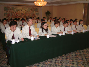 5日上午8:30會(huì)議正式開(kāi)始,會(huì)議由集團(tuán)總裁領(lǐng)導(dǎo)班子總裁楊智斌主持并首先作工作報(bào)告,楊總總結(jié)了主市場(chǎng)3-6月的工作情況,指出前段時(shí)間市場(chǎng)上出現(xiàn)的一些問(wèn)題和召開(kāi)此次大會(huì)的重要性,并指出此次大會(huì)不喊口號(hào)、不走形勢(shì),要實(shí)實(shí)在在的落實(shí) “全力出擊”實(shí)施方案,把各項(xiàng)計(jì)劃指標(biāo)落到實(shí)處,為下一步的工作做好規(guī)劃和部署。隨后各省區(qū)CEO也逐一發(fā)言,每個(gè)人總結(jié)了3-6月份的任務(wù)完成情況,楊總針對(duì)每個(gè)省區(qū)的情況做了相應(yīng)點(diǎn)評(píng)。