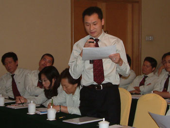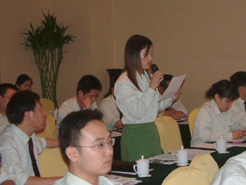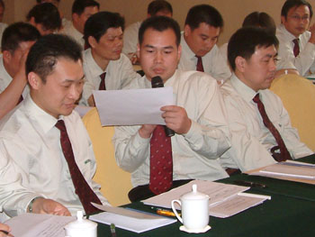 下午大會(huì)首先由肖摩董事宣讀了董事局下達(dá)的“全力出擊”決策要令,然后由副主裁孫霞宣讀市場(chǎng)“全力出擊”實(shí)施方案,方案針對(duì)董事局的決策要令對(duì)一下步的市場(chǎng)工作進(jìn)行了具體安排,從銷(xiāo)售回款、財(cái)流物流、推廣宣傳、醫(yī)療開(kāi)發(fā)、人力資源等各方面都進(jìn)行了詳細(xì)部署,在宣傳過(guò)程中,楊總對(duì)方案逐條予以解釋說(shuō)明。然后大家對(duì)實(shí)施方案發(fā)表自己的見(jiàn)解,對(duì)市場(chǎng)上出現(xiàn)的一些問(wèn)題進(jìn)行了熱烈的討論,楊總針對(duì)突出的問(wèn)題進(jìn)行了解答并提出了相應(yīng)的解決方案。