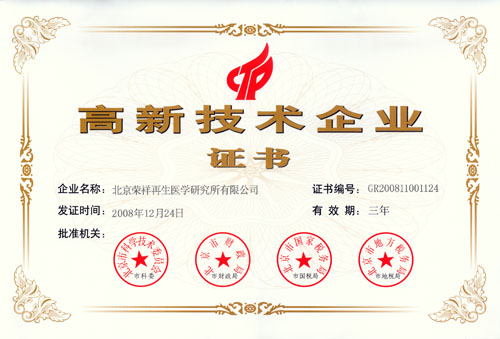 北京榮祥再生醫(yī)學研究所獲得北京市高新技術(shù)企業(yè)稱號