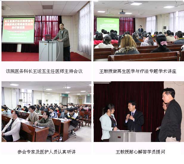 來(lái)自該院外科、骨科、內(nèi)科、護(hù)理等近100余醫(yī)護(hù)人員參加了此次培訓(xùn)。會(huì)議由醫(yī)務(wù)科王運(yùn)武科長(zhǎng)主持。在兩個(gè)多小時(shí)的講座中,王教授首先向與會(huì)醫(yī)護(hù)人員介紹了我國(guó)著名生命科學(xué)家、醫(yī)學(xué)家徐榮祥教授在人體再生復(fù)原科學(xué)領(lǐng)域取得的實(shí)驗(yàn)及臨床研究最新進(jìn)展,在2010年年底公布的“人體生命延續(xù)之謎(二)——線粒體主導(dǎo)日常生命”,破解了“精、氣、神、力”旺盛與人體啟動(dòng)了再生生命程序有關(guān),與細(xì)胞內(nèi)各主要細(xì)胞器功能的發(fā)揮有關(guān),并進(jìn)一步證實(shí)了一個(gè)生命體可以同時(shí)具有“基本生命”和“再生生命”等,然后王教授結(jié)合了大量的臨床病例資料,主要針對(duì)不同深度的燒傷創(chuàng)面及各類難愈性創(chuàng)傷、潰瘍創(chuàng)面的規(guī)范化處理方法與技巧、注意事項(xiàng)等進(jìn)行了細(xì)致地講解,生動(dòng)的講說(shuō)和翔實(shí)的病例贏得了在場(chǎng)醫(yī)務(wù)人員的熱烈掌聲。會(huì)后王主任還就學(xué)員們提出的問(wèn)題一一做了詳細(xì)地解答。會(huì)后各科領(lǐng)導(dǎo)表示將在臨床更加全面地推廣再生醫(yī)療技術(shù),為更多患者造福。