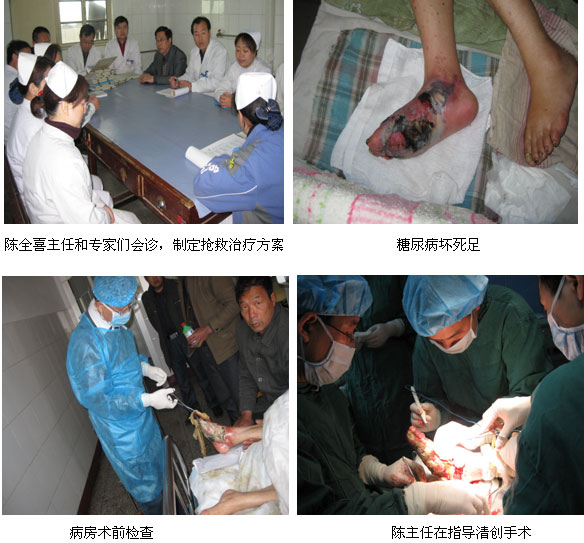 清明節(jié)前夕,中國中西醫(yī)結(jié)合學(xué)會燒傷專業(yè)委員會專家陳全喜主任應(yīng)邀到河南許昌市公療醫(yī)院創(chuàng)傷骨科會診一位糖尿病壞死足誘發(fā)感染性休克病人。許昌市公療醫(yī)院前身是省級管轄醫(yī)院原名為淮河二院,1970年更名為許昌市公療醫(yī)院。該院位于市中心緊靠市政府,總占地12760㎡,職工796人,病床510張,技術(shù)力量配備合理,設(shè)備先進(jìn),是許昌一家較有名聲的醫(yī)院。