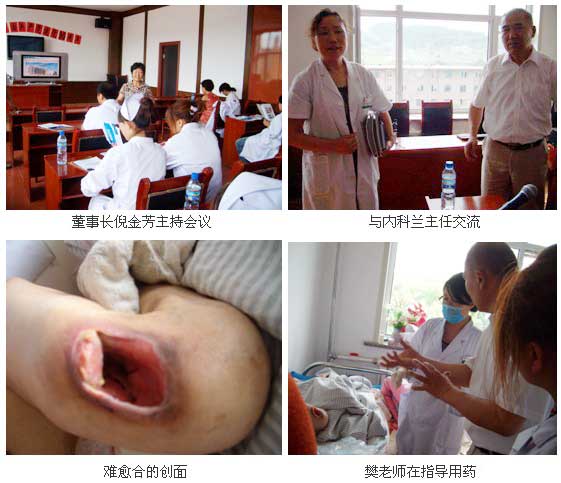 2011年7月10日下午,中國中西醫(yī)結(jié)合學會燒傷專業(yè)委員會的樊兆宗教授在喬巍的陪同下,來到了該醫(yī)院。對該院的外科、內(nèi)科急診科、老年病房的20多名醫(yī)護人員進行了再生醫(yī)療技術(shù)的普及推廣工作,在培訓中樊教授有針對性的對該院的特色科室老年病房中接收的褥瘡、糖尿病潰瘍患者的創(chuàng)面處理進行了重點講解,指出了一定要規(guī)范用藥,保護好創(chuàng)面殘留的潛能再生細胞的重要性。學員們都能認真的聽課并記錄筆記。