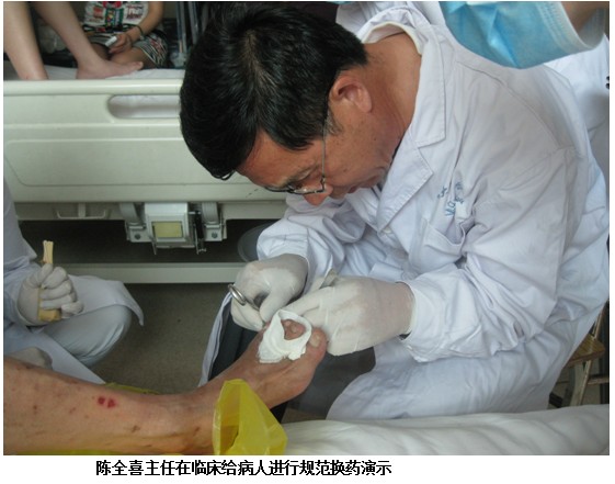 2012年5月22日,中國中西醫(yī)結(jié)合學會燒傷專業(yè)委員會委員,北京美寶燒傷瘡瘍研究所臨床部技術(shù)推廣專家陳全喜主任應(yīng)河南鄭州大學第一附屬醫(yī)院內(nèi)分泌科孫主任的邀請,對糖尿病患者右腳潰瘍創(chuàng)面會診。