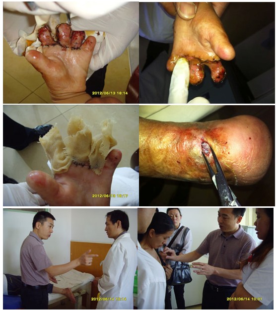 會(huì)后數(shù)名醫(yī)生圍著王主任就他們?cè)谂R床上的一些棘手的問(wèn)題向王主任請(qǐng)教,耳鼻喉科的醫(yī)生更是把病人都帶到會(huì)場(chǎng)。王主任當(dāng)場(chǎng)指導(dǎo)。當(dāng)日下午講課結(jié)束后及第二天上午,王主任兩次應(yīng)邀到該院骨科、燒傷整形及腫瘤外科去會(huì)診,先后為一例骨科創(chuàng)瘍、一例小兒燒傷后并左手指攣縮畸形整形術(shù)后皮片生長(zhǎng)不良患兒一例左足跟慢性潰瘍及一例胸部增生性瘢痕患者進(jìn)行了會(huì)診及臨床指導(dǎo),醫(yī)務(wù)人員都非常感謝王主任毫不保留的技術(shù)傳授。