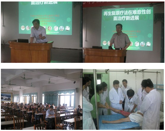 2012年8月8日下午,應(yīng)儋州市第一人民醫(yī)院醫(yī)務(wù)科黃科長的邀請,中國中西醫(yī)結(jié)合學(xué)會燒傷專業(yè)委員會常委兼秘書、《中國燒傷創(chuàng)瘍雜志》副總編輯、北京美寶燒傷創(chuàng)瘍研究所副所長、臨床研究部主任王洪生研究員給大家做了一期“再生復(fù)原療法在難愈性創(chuàng)瘍創(chuàng)面治療新進展”專題臨床學(xué)術(shù)講座。在學(xué)術(shù)講座中,王主任結(jié)合臨床圖片就再生復(fù)原療法對各種難愈性創(chuàng)傷,潰瘍創(chuàng)面的規(guī)范處理方法與技巧做了詳細講解。會后該醫(yī)院骨科主任及外科主任等各骨干醫(yī)生踴躍與王主任交流,王主任對他們提出的在臨床中常遇到的一些治療技術(shù)難題進行了詳細解答。