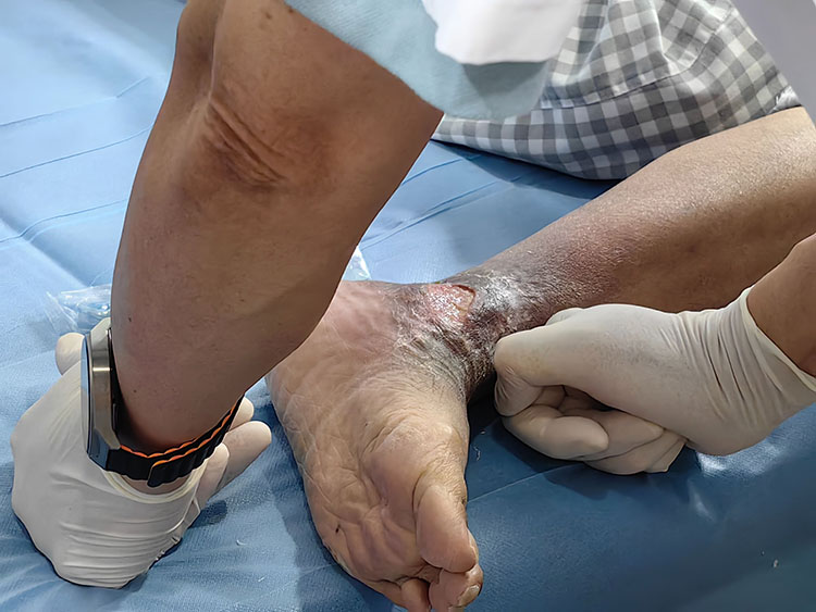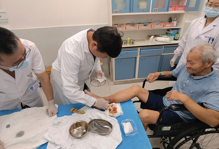 2025年7月1日,中國中西醫(yī)結(jié)合學會燒傷專業(yè)委員會常務(wù)委員、《中國燒傷創(chuàng)瘍雜志》副總編輯王洪生,應(yīng)東莞市樟木頭石新醫(yī)院外一科傅桂軍主任邀請,來到該科室會診一例術(shù)后慢性難愈性創(chuàng)面,王教授給出了創(chuàng)面處理指導意見及手術(shù)方案;下午來到東莞市濱海灣中心醫(yī)院燒傷整形科,會診了糖足,壓瘡病人共5例,并指導燒傷整形科主任廖鏘云主任共同參與一例糖足病人的手術(shù)。在王教授的指導下,科室臨床醫(yī)生們學到了術(shù)前如何快速讓病人止痛及手術(shù)清創(chuàng)等高難度技術(shù)演示,術(shù)后病人非常滿意,本次會診獲得醫(yī)護人員的一致稱贊!