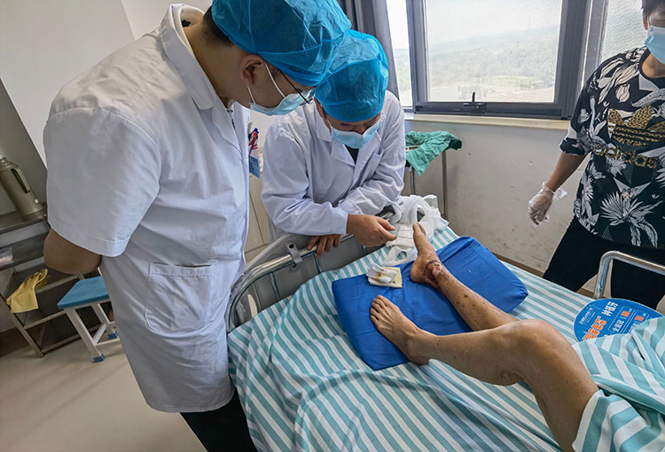 2025年7月1-2日,《中國燒傷創(chuàng)瘍雜志》編委、燒傷創(chuàng)瘍再生醫(yī)療技術(shù)臨床專家張強,先后應(yīng)邀來到桐城市人民醫(yī)院、懷寧縣人民醫(yī)院,張強主任分別對兩例慢性創(chuàng)患者進行了會診,張強主任親自示范再生醫(yī)療技術(shù)換藥流程,強調(diào)了換藥過程中的禁忌和注意事項,并交流了綜合治療方案。再生醫(yī)療技術(shù)是中西醫(yī)結(jié)合創(chuàng)面治療方案的典范,其推廣應(yīng)用將極大造福廣大燒傷及慢創(chuàng)患者!