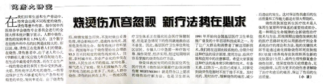 徐榮祥教授發(fā)明的皮膚原位再生醫(yī)療技術(燒傷濕潤暴露療法/濕潤燒傷膏MEBT/MEBO)就是符合以上要求的燒傷治療新方法,也是衛(wèi)生部從1991年開始向全國基層醫(yī)療衛(wèi)生單位推廣普及的十年百項科技成果之一。為了讓廣大群眾和消費者了解這項新技術,我們將在這里比較系統(tǒng)的,分期介紹這種療法的設計原理、使用方法、臨床療效和應用中的注意事項。希望大家掌握這種療法的基本常識和操作技術,有備無患,以防萬一,在自己或家人、同事受到燒燙傷危害時不至于措手不及,及時用藥、及時治療,緩解燒傷的痛苦,減少后遺癥的發(fā)生。這對保證傷員愈后的生活質(zhì)量和工作能力都是有很大幫助的。