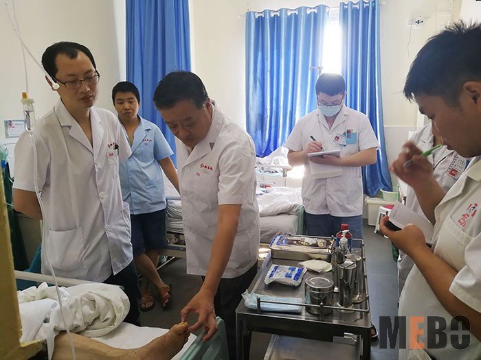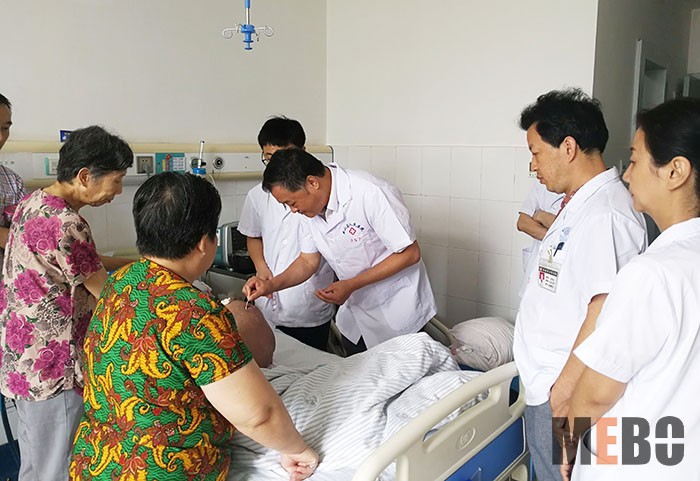7月17日,應(yīng)山西繁峙縣人民醫(yī)院的緊急會診邀請,再生醫(yī)學(xué)知名專家、《中國燒傷創(chuàng)瘍雜志社》常務(wù)編委趙瑞慶主任前往該院會診病人?;颊邽樨澙艏彝?,身患胸椎骨折內(nèi)固定術(shù)后合并骶尾部巨大褥瘡向深部發(fā)展、發(fā)熱病情危重。分析病情后趙主任為病人緊急做了傷口處置、引流膿性分泌物,提供了再生技術(shù)治療方案,該患者下午五點第二次換藥時體溫轉(zhuǎn)入正常。趙主任還在科室為醫(yī)護人員進行了再生技術(shù)治療各類褥瘡的培訓(xùn),受到大家的熱情稱贊。