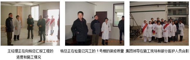 14日上午10時許,楊智斌董事長一行剛下車便直接深入到正在進行裝修改造的行政樓和病房樓工地視察和現(xiàn)場指導。工程項目負責人王經理詳細介紹了工程進展情況,楊總、李總和陳教授分別就水電設置、門窗材質、燒傷重癥監(jiān)護病房等一些具體的問題提出了相應的建議和意見,并要求施工方文明施工、保質保量地按合同要求完成總體改造裝修工程,確保明年3月新醫(yī)院的正常開業(yè)。