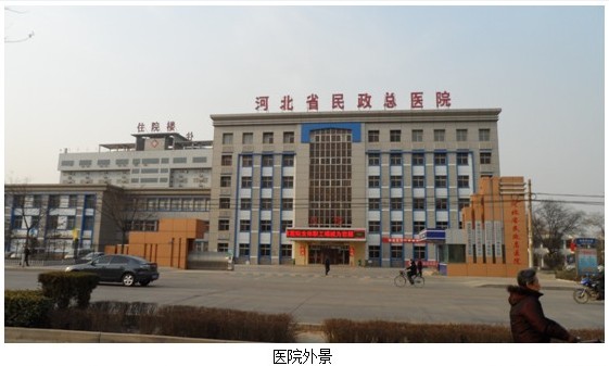 河北省民政總醫(yī)院是由原河北省復(fù)員軍人醫(yī)院和河北省榮譽(yù)軍人康復(fù)醫(yī)院整合而成。醫(yī)院技術(shù)力量雄厚、專業(yè)科室齊全、醫(yī)療設(shè)備先進(jìn),是集醫(yī)療、科研、教學(xué)、預(yù)防保健和康復(fù)醫(yī)療于一體的現(xiàn)代化綜合醫(yī)院。醫(yī)院坐落于邢臺(tái)市區(qū)西北(橋西區(qū)泉南西大街293號(hào)),環(huán)境優(yōu)美、交通便利、醫(yī)療建筑面積近4萬(wàn)平方米,有急診樓、門診樓、醫(yī)技樓、康復(fù)樓、住院樓、頤康樓及其他配備設(shè)施。編制床位800張?,F(xiàn)有職工700余人,其中高級(jí)職稱124人,中級(jí)職稱161人。