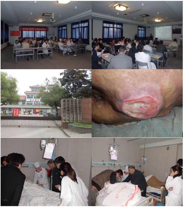 2013年3月20日下午,金教授馬不停蹄前往黃石市另一家醫(yī)院普仁醫(yī)院做了題為《燒傷皮膚原位再生醫(yī)療技術臨床應用規(guī)范》的專題講座,講座在醫(yī)務科張科長的主持下進行,醫(yī)院各科室的醫(yī)護人員齊聚會場,金教授在講座中結合了大量的臨床病例圖片及錄像資料,主要針對各類難愈性創(chuàng)傷、潰瘍創(chuàng)面、糖尿病足、放射性潰瘍的規(guī)范化處理方法與技巧、注意事項等進行了細致地講解,強調創(chuàng)面處理要大膽清創(chuàng)、減壓、去除壞死組織,并保持創(chuàng)面生理的濕潤環(huán)境,實現創(chuàng)面的再生復原,并建議對病人深達真皮層以下愈合后創(chuàng)面應進行防疤處理治療。講座結束后,金老師又應神經內科胡艷護士長的邀請對醫(yī)院的幾位褥瘡患者進行了會診及換藥示范,張科長和胡護士長都表示通過此次的講座與示范,令大家受益匪淺。
