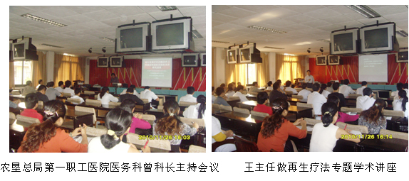 應云南省農(nóng)墾總局第一職工醫(yī)院的邀請,中國中西醫(yī)結(jié)合學會燒傷專業(yè)委員會常委、北京美寶燒傷創(chuàng)瘍研究所副所長、臨床研究部主任王洪生研究員于2010年11月26日來到該院進行技術(shù)交流。王洪生研究員首先到該醫(yī)院燒傷外科為該院收治的大面積燒傷患者會診,指導該院醫(yī)生如何規(guī)范應用再生醫(yī)療技術(shù)及創(chuàng)面正確的處理方法,并于當日下午3時在該院進行“再生療法在糖尿病足等難治性創(chuàng)傷創(chuàng)面治療的新進展”專題學術(shù)講座。