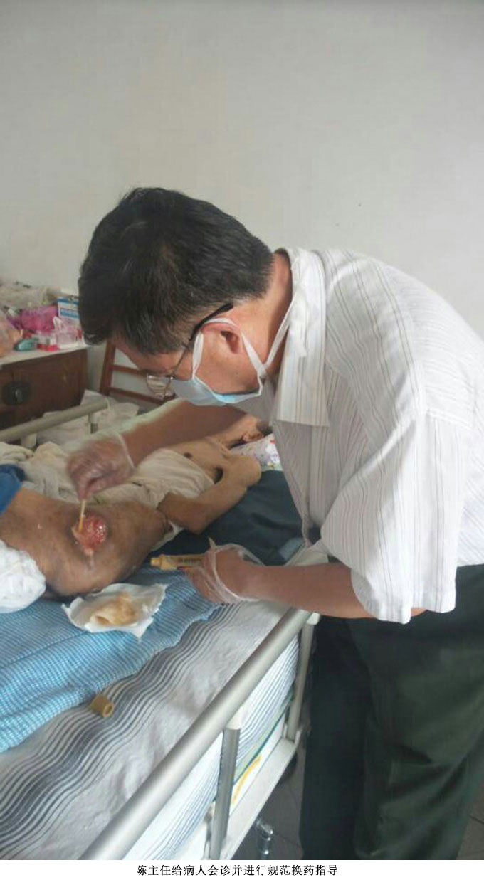 2014年7月8日,河南平頂山市葉縣人民醫(yī)院業(yè)務(wù)院長(zhǎng)劉曉輝邀請(qǐng)中國(guó)中西醫(yī)結(jié)合學(xué)會(huì)燒傷專業(yè)委員會(huì)委員、北京燒傷創(chuàng)瘍研究所臨床部專家陳全喜主任進(jìn)行《燒傷創(chuàng)瘍?cè)偕t(yī)學(xué)與療法臨床多科室應(yīng)用》技術(shù)培訓(xùn),以期全面提高醫(yī)院各科室創(chuàng)面處理水平。