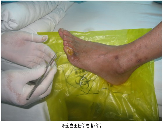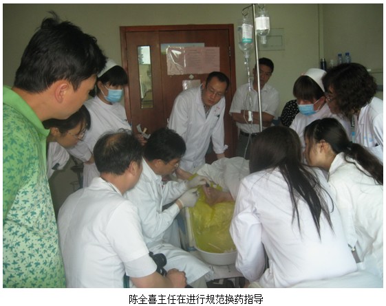 2012年6月8號上午,中國中西醫(yī)結(jié)合學(xué)會燒傷專業(yè)委員會委員、北京美寶燒傷創(chuàng)瘍研究所臨床技術(shù)部推廣專家陳全喜主任應(yīng)河南鄭州大學(xué)第一附屬醫(yī)院內(nèi)分泌二科孫教授的邀請,會診兩位患糖尿病足潰瘍創(chuàng)面病人,進(jìn)行臨床規(guī)范換藥示范。隨后陳全喜主任又對全科人員進(jìn)行膚原位再生醫(yī)療技術(shù)培訓(xùn)。
