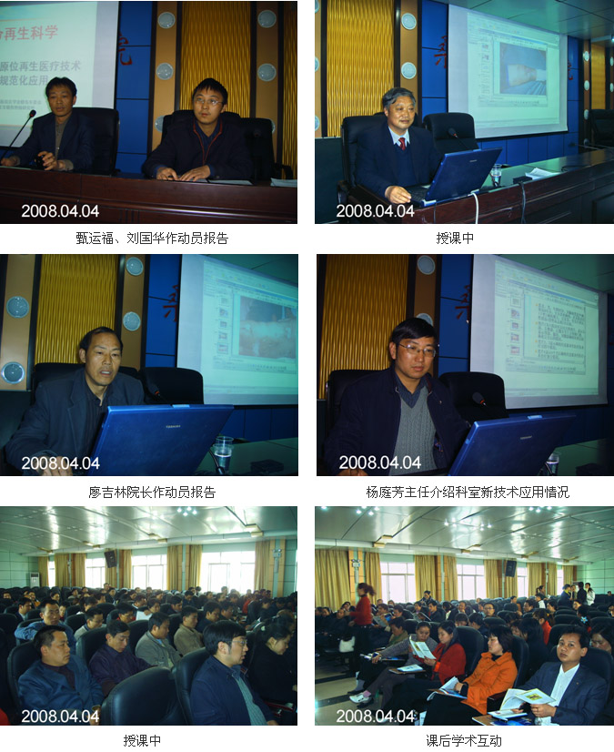 2008年4月4日下午2點(diǎn)30分,清明節(jié)放假的第一天,由張家界市桑植縣衛(wèi)生局、衛(wèi)生監(jiān)督所、桑植縣中醫(yī)院承辦的“燒傷醫(yī)學(xué)新進(jìn)展學(xué)習(xí)班”在桑植縣中醫(yī)院四樓會(huì)議室舉行。來(lái)自桑植縣人民醫(yī)院、桑植縣中醫(yī)院、桑植縣各鄉(xiāng)鎮(zhèn)醫(yī)生共300多人在這里參加了學(xué)習(xí)班。桑植縣人民衛(wèi)生監(jiān)督所所長(zhǎng)甄運(yùn)福、桑植縣衛(wèi)生局副局長(zhǎng)黃宏光、科長(zhǎng)劉國(guó)華、桑植縣人民醫(yī)院廖院長(zhǎng)、主持會(huì)議并發(fā)表了熱情洋溢的講話(huà),他在講話(huà)中對(duì)與會(huì)的各位領(lǐng)導(dǎo)、專(zhuān)家和與會(huì)學(xué)員表示熱烈歡迎和衷心感謝,對(duì)我國(guó)著名生命科學(xué)家徐榮祥教授近年來(lái)在生命再生科學(xué)、人類(lèi)組織器官克隆、燒傷再生醫(yī)學(xué)等領(lǐng)域所取得的重大臨床和實(shí)驗(yàn)研究成果給予了高度評(píng)價(jià),對(duì)能在百忙之中抽出時(shí)候來(lái)到山區(qū)給學(xué)員講課的金教授表示了萬(wàn)分的感謝。