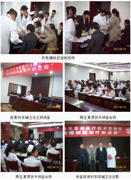 2012年4月19日中國中西醫(yī)結合學會燒傷專業(yè)委員會委員、北京美寶燒傷創(chuàng)瘍研究所臨床部研究員、燒傷創(chuàng)瘍專家杜福勤主任和學會駐江蘇省辦事處劉恒主任應姜堰市中醫(yī)院醫(yī)教科李鋮科長之邀,為姜堰市中醫(yī)院作“再生復原技術在燒傷創(chuàng)傷潰瘍創(chuàng)面臨床治療新進展”講座,杜主任利用大量臨床實踐資料介紹了再生復原科學創(chuàng)立者,再生復原技術發(fā)明人徐榮祥教授研究創(chuàng)立和實踐的歷程,介紹了國內外臨床實踐、推廣情況,重點講解了再生復原技術在燒傷創(chuàng)傷潰瘍創(chuàng)面的清創(chuàng)換藥技術,介紹了再生復原技術專用產品MEBO燒傷膏、美寶創(chuàng)瘍貼、美寶疤痕軟膏的功能,臨床療效、臨床效果、注意事項及不良反應。同時介紹了創(chuàng)瘍貼的產品特點;1、特有的框架劑型,2、多重的生物功能,3、良好的止痛作用,4、可靠的臨床效果,5、獨有的專利產品。接著又介紹了美寶疤痕軟膏和微波超聲透入儀治療疤痕的資料,深受入會醫(yī)護人員的歡迎,起到了深入推廣再生復原技術地目的,造福姜堰市燒傷創(chuàng)瘍患者,福祉一方百姓。
