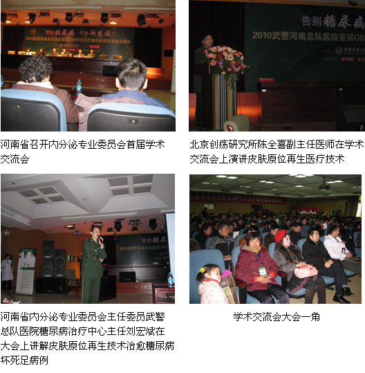 2010年4月20日,在河南省武警醫(yī)院糖尿病治療中心召開(kāi)了河南省第一次糖尿病專業(yè)學(xué)術(shù)交流會(huì),會(huì)議上首先河南省內(nèi)分泌專業(yè)委員會(huì)主任委員、武警總隊(duì)醫(yī)院糖尿病治療中心主任劉宏斌與大家一起分享了他應(yīng)用原位再生醫(yī)療技術(shù)治愈糖尿病壞死足患者的經(jīng)驗(yàn),同時(shí)將北京燒傷創(chuàng)瘍研究所副主任醫(yī)師陳全喜介紹給大家。陳全喜主任向各位專家介紹了原位再生醫(yī)療技術(shù),應(yīng)用該技術(shù)治療糖尿病皮膚潰瘍、糖尿病壞死足的方法與換藥技巧,并利用臨床大量的病例資料及圖片向大家展示了再生醫(yī)療技術(shù)良好的治療效果。陳主任精彩的演講及再生醫(yī)療技術(shù)神奇的治療結(jié)果引起了會(huì)議上的學(xué)者、專家的高度重視,專家們認(rèn)為這是目前科學(xué)前沿的最新科研成果,并表示壞死足趾不截趾、肢是當(dāng)前醫(yī)生們認(rèn)為最完美的治療結(jié)果,同時(shí)給患者帶來(lái)終身的幸福,很值得推廣使用。