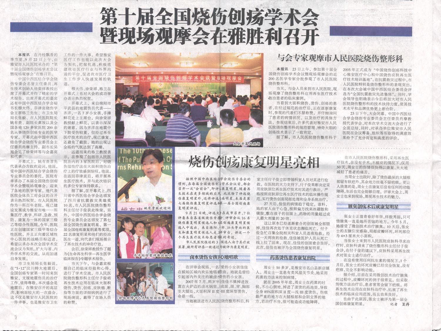 四川雅安日?qǐng)?bào)報(bào)道第十屆全國(guó)燒傷瘡瘍學(xué)術(shù)會(huì)