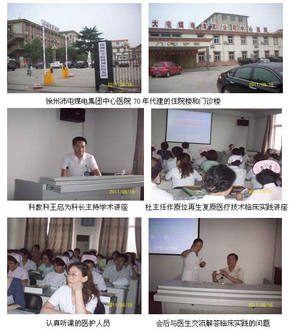 2011年8月16日,應(yīng)徐州沛屯煤電集團中心醫(yī)院科教科王啟為科長的邀請,中國中西醫(yī)結(jié)合學(xué)會燒傷專業(yè)委員會委員、北京美寶燒傷創(chuàng)瘍研究所臨床部杜福勤主任和學(xué)會駐南京辦事處劉恒主任、周銀梅一起在該院舉辦國家中醫(yī)藥管理局醫(yī)學(xué)繼教項目—再生復(fù)原醫(yī)療技術(shù)學(xué)術(shù)講座。