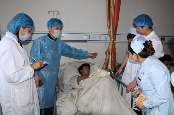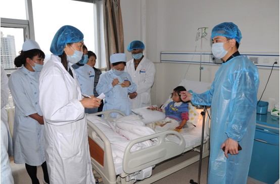 首先楊所長(zhǎng)對(duì)貴航302醫(yī)院開展燒傷皮膚再生醫(yī)療技術(shù)所做的工作表示肯定,并表示醫(yī)院具備了開辦中國(guó)中西醫(yī)結(jié)合學(xué)會(huì)燒傷專委會(huì)貴州省安順市燒傷創(chuàng)瘍培訓(xùn)基地的基本條件,雙方就建立基地醫(yī)院的事宜取得一致意見,決定5月底舉行醫(yī)院授牌儀式,同時(shí)2013年“中西醫(yī)結(jié)合創(chuàng)面修復(fù)新技術(shù)培訓(xùn)班”由醫(yī)院承辦。王洪生研究員在醫(yī)院燒傷創(chuàng)瘍科指導(dǎo)燒傷創(chuàng)瘍臨床治療工作,王教授親自查房,對(duì)患者治療的具體問(wèn)題進(jìn)行指導(dǎo)解說(shuō),并提出了寶貴意見。