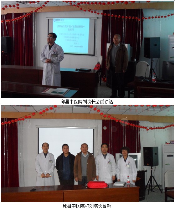 11月20日,邯鄲邱縣中醫(yī)院之行:邱縣中醫(yī)院的劉院長負責內科,在治療壓瘡、糖尿病潰瘍上應用再生技術多年,對MEBO技術非常熟悉,對再生技術的效果非常肯定。會上劉院長認真聽著樊教授對每一個病例的講解,每到關鍵之處便會記上幾筆,會后醫(yī)生們就一些臨床難題和樊教授進行了交流。