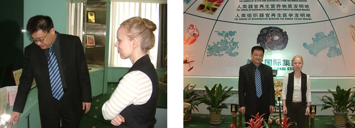 Margaret女士目前的研究課題是世界不同國(guó)家在生命科學(xué)研究領(lǐng)域的立法或政策控制對(duì)科學(xué)的促進(jìn)或阻礙作用,她希望了解到世界知名科學(xué)家如何看待自己的工作和他們的科學(xué)思維方式。最近,她訪問過許多成體干細(xì)胞、臍帶血干細(xì)胞和胚胎干細(xì)胞領(lǐng)域的科學(xué)家,調(diào)查他們的科研思維,在多位瑞典科學(xué)家的推薦下,她得知美寶國(guó)際集團(tuán)在利用干細(xì)胞原位再生燒傷皮膚和胃腸黏膜器官方面取得的成就,故此次專程來到美寶國(guó)際集團(tuán)采訪了徐榮祥教授。