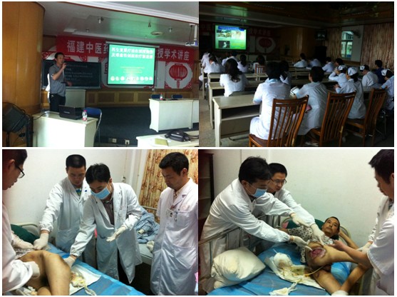 結(jié)束了泰寧兩家醫(yī)院的講座,2012年5月10日中國中西醫(yī)結(jié)合學(xué)會燒傷專業(yè)委員會常委兼秘書、中國燒傷創(chuàng)瘍雜志副總編輯、北京美寶燒傷創(chuàng)瘍研究所副所長、臨床部主任王洪生研究員馬不停蹄地趕往福建省將樂縣,下午三點(diǎn)半在該將樂縣中醫(yī)院六樓會議室為該院的外科、骨科、五官科、皮膚科等科室的醫(yī)生和部分護(hù)理 部的人員共50余人進(jìn)行了“再生復(fù)原療法在燒傷及難愈性創(chuàng)瘍創(chuàng)面治療新進(jìn)展”的學(xué)術(shù)講座。