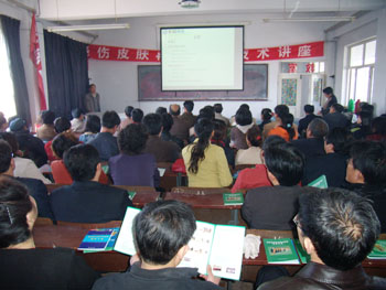 經(jīng)過近幾年來的推廣普及維護(hù),張家口市區(qū)縣內(nèi)各級(jí)醫(yī)療單位,不同程度的應(yīng)用著燒傷皮膚原位再生醫(yī)療技術(shù),從而滿足了部分燒傷患者的就醫(yī)需求,解決了醫(yī)生在治療患者中遇到的難題。張家口是一個(gè)地域遼闊、人群居住分散、交通欠發(fā)達(dá)的地區(qū),燒傷皮膚原位再生醫(yī)療技術(shù)推廣起來有一定的難度。今年春季以來 ,張家口市衛(wèi)生局科教科在熟知該項(xiàng)技術(shù)是“國家十年百項(xiàng)科技成果”且已被國家列為“星火計(jì)劃”推廣項(xiàng)目之后,為了更大范圍、更加深入的向基層推廣,更好的讓醫(yī)務(wù)人員解決基層燒傷創(chuàng)瘍患者的痛苦,對(duì)燒傷皮膚原位再生醫(yī)療技術(shù)的推廣給予了高度重視,并以書面文件要求各縣級(jí)衛(wèi)生局給予支持。中國中西醫(yī)結(jié)合學(xué)會(huì)燒傷專業(yè)委員會(huì)于四月二十三和二十五日,分別在涿鹿縣和陽原縣,舉辦了由縣內(nèi)各級(jí)醫(yī)療單位相關(guān)科室醫(yī)務(wù)人員參加的培訓(xùn)班,兩個(gè)班的聽課人數(shù)分別為135人和105人。在培訓(xùn)班上,由醫(yī)療部樊兆宗主任,重點(diǎn)講解了燒傷皮膚原位再生醫(yī)療技術(shù)的規(guī)范應(yīng)用,以及再生療法在多學(xué)科的應(yīng)用和進(jìn)展。大家對(duì)講座非常感興趣,學(xué)習(xí)熱情很高,會(huì)后又進(jìn)行了互動(dòng)和交流,加強(qiáng)了縣級(jí)醫(yī)院和鄉(xiāng)村醫(yī)生的合作,起到很好的技術(shù)開發(fā)推廣和鞏固的作用。與會(huì)人員對(duì)“中國中西醫(yī)結(jié)合學(xué)會(huì)燒傷專業(yè)委員會(huì)”給基層醫(yī)院、衛(wèi)生院以及診所送來這樣好的技術(shù),協(xié)助他們解決臨床上的難題,一再表示感謝。通過這兩次辦班我們也深深體會(huì)到:“燒傷皮膚再生醫(yī)療技術(shù)”是深受基層醫(yī)療單位和廣大患者歡迎的好技術(shù),我們一定要再接再厲。與此同時(shí)把“人體再生養(yǎng)生保健”和“速愈貼”介紹給大家。把燒傷皮膚再生醫(yī)療技術(shù)推廣工作,做的更好!