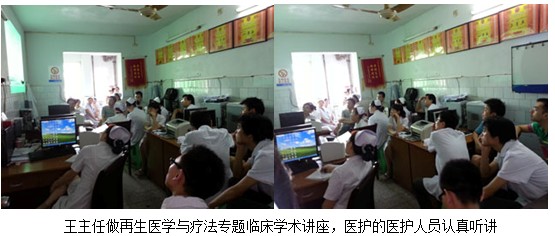 2012年9月5日,應(yīng)銅梁縣人民醫(yī)院普外科陳明主任的邀請,中國中西醫(yī)結(jié)合學(xué)會燒傷專業(yè)委員會常委兼秘書、《中國燒傷創(chuàng)瘍雜志》副總編輯、北京美寶燒傷創(chuàng)瘍研究所副所長、第二臨床研究部主任王洪生研究員來到該科室,給全體醫(yī)生及護理人員20多人進行再生醫(yī)療技術(shù)講座并進行學(xué)術(shù)和技術(shù)上的交流和探討。王主任就“再生復(fù)原療法在深度燒傷及難愈性創(chuàng)面治療新進展”作專題學(xué)術(shù)講座,王主任結(jié)合大量真實的臨床病例圖片和圖像,將再生復(fù)原療法在深度燒傷及難愈性創(chuàng)瘍創(chuàng)面治療上的這種新方法對不同深度的燒傷創(chuàng)面及各類難愈創(chuàng)傷、潰瘍創(chuàng)面的規(guī)范化處理方法與技巧、注意事項等進行了細致地講解。講座結(jié)束后,在該科室醫(yī)護人員強烈的學(xué)習(xí)氣氛中,王教授和大家一起討論了再生醫(yī)學(xué)醫(yī)療技術(shù)的要點及難點。陳明主任表示,他們應(yīng)用再生醫(yī)療技術(shù)是從上個世紀80年代開始,應(yīng)用效果非常好,但沒有想到這已經(jīng)發(fā)展成為一整套的科學(xué)體系,應(yīng)用到各種瘡瘍創(chuàng)面上效果都如此神奇,我們今后也一定將再生醫(yī)療技術(shù)在該科室應(yīng)用得更好,造福一方百姓。