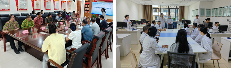 8月27日,訪問團再次前往燒傷創(chuàng)瘍科病房,在王鄉(xiāng)寧主任的帶領(lǐng)下對患者進(jìn)行查房。通過床旁講解,訪問團了解到了進(jìn)行多技術(shù)聯(lián)合治療的最佳時機以及輔助治療對促進(jìn)創(chuàng)面愈合的良好效果。病房參觀結(jié)束后,雙方醫(yī)生圍坐學(xué)習(xí)室,來自RSUD Dr. Soetomo醫(yī)院整形外科的Agus Santoso Budi主任及來自RSUP Dr. Sardjito醫(yī)院整形外科的Rianto Noviady Ramli主任分享了在印尼當(dāng)?shù)貞?yīng)用再生醫(yī)療技術(shù)治療燒傷的經(jīng)驗,通過與中方專家的交流,代表團更加深入的了解到了如何在臨床中正確應(yīng)用該技術(shù)的治療原則。