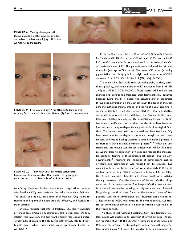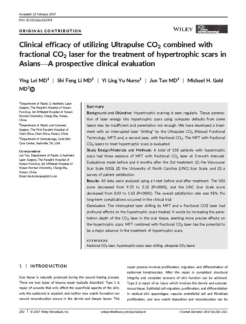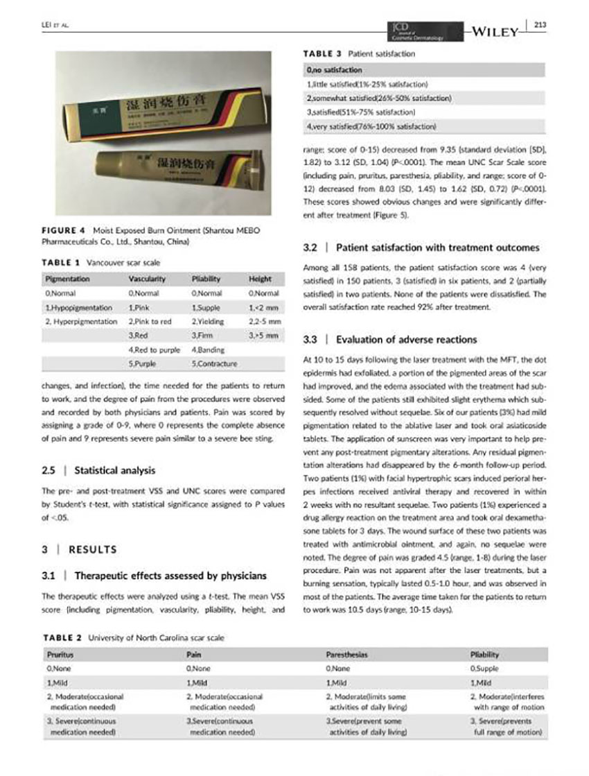 “濕潤燒傷膏對超脈沖CO2點(diǎn)陣激光干預(yù)兔耳淺表性瘢痕真皮—表皮連接區(qū)組織學(xué)的影響”一文發(fā)表于中國出版的《中華醫(yī)學(xué)美學(xué)美容雜志》及美國出版的《美容皮膚雜志》。