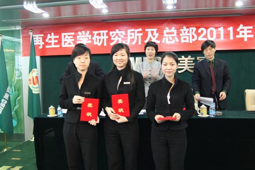 乘集團(tuán)大會的東風(fēng),再生醫(yī)學(xué)研究所2010年總結(jié)表彰大會元月12日上午在集團(tuán)總部召開,集團(tuán)總裁班子常務(wù)副總裁、再生醫(yī)學(xué)研究所執(zhí)行所長張倩主持會議,再生醫(yī)學(xué)研究所各部門員工70余人參加了會議,會場上布置的彩色標(biāo)語格外醒目,突出了會議主題,大科學(xué) 大經(jīng)濟(jì) 開創(chuàng)美寶國際集團(tuán)2011新時代!大科學(xué),大經(jīng)濟(jì),開創(chuàng)美寶新紀(jì)元!大愿景,大發(fā)展,開啟美寶國際市場新篇章!以“三進(jìn)精神為指導(dǎo),實現(xiàn)大科學(xué)大經(jīng)濟(jì)發(fā)展宏偉目標(biāo),集中表現(xiàn)了再生醫(yī)學(xué)研究所領(lǐng)導(dǎo)和全體員工2011年的努力方向和信心。