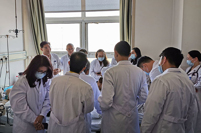 15日下午,在南苑醫(yī)院燒傷創(chuàng)瘍科,各位來(lái)華醫(yī)生聽取了陳永翀教授關(guān)于南苑醫(yī)院燒傷創(chuàng)瘍科以及其醫(yī)護(hù)人員的介紹,并分別就大面積燒傷、糖尿病足潰瘍、壓瘡等進(jìn)行了PPT病例展示以及治療經(jīng)驗(yàn)分享。