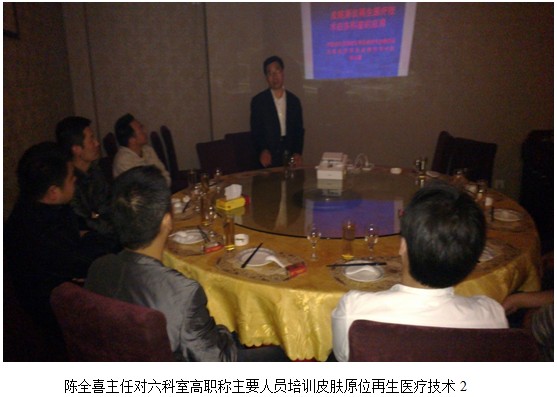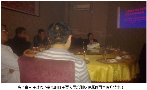 黃河三門峽醫(yī)院在三個月前已進行過一次皮膚原位再生培訓。通過三個月的臨床應用,遇到了一些臨床棘手病人,特邀請陳全喜主任再次進行皮膚原位再生醫(yī)療技術培訓。下午3點,在黃河迎賓大酒店舉辦了六科室主任、護士長的高職稱科主要人員學習培訓班(產科、骨科一、骨科二、泌尿外科、心胸外科,普外科。)