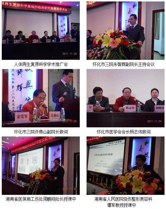 2011年11月20日,由湖南省中西醫(yī)結(jié)合學(xué)會(huì)燒傷專(zhuān)業(yè)委員會(huì)、懷化市衛(wèi)生局舉辦,懷化市三醫(yī)院承辦的再生醫(yī)療技術(shù)全區(qū)培訓(xùn)在市三醫(yī)院多功能廳舉行,會(huì)議由朱副院長(zhǎng)主持,邀請(qǐng)的湖南省內(nèi)高級(jí)別專(zhuān)家有:湖南省醫(yī)保局工傷處周鵬翔處長(zhǎng)、湖南省人民醫(yī)院燒傷整形美容科譚軍教授、湘雅三醫(yī)院燒傷整形美容科彭浩教授、中國(guó)中西醫(yī)結(jié)合學(xué)會(huì)燒傷專(zhuān)業(yè)委員會(huì)臨床部金黨軍教授、湖南省人民醫(yī)院燒傷整形美容科李高峰教授等。他們分別從人體再生復(fù)原科學(xué)、激光美容術(shù)后再生療法應(yīng)用、大面積燒傷的再生醫(yī)療技術(shù)應(yīng)用、再生醫(yī)療技術(shù)的多科室應(yīng)用等方面對(duì)再生醫(yī)療技術(shù)進(jìn)行實(shí)用技術(shù)培訓(xùn)。其中湖南省醫(yī)保局工傷處周鵬翔處長(zhǎng)結(jié)合本職工作及以前的臨床工作經(jīng)驗(yàn)從三個(gè)方面進(jìn)行了闡述,即:引領(lǐng)發(fā)展方向、搶占發(fā)展先機(jī)、學(xué)習(xí)最新技術(shù)。全面闡述了人體再生復(fù)原科學(xué)的基礎(chǔ)發(fā)展和臨床應(yīng)用成果展示。最后,懷化市三院燒傷整形科主任張春喜介紹該院多年來(lái)在人體再生復(fù)原科學(xué)的臨床應(yīng)用情況和成果展示。演講者精彩的講座博得了與會(huì)者的一陣陣熱烈的掌聲和一致好評(píng)。本次與會(huì)者有懷化地區(qū)各縣市工傷醫(yī)保局領(lǐng)導(dǎo)、各醫(yī)院相關(guān)科室負(fù)責(zé)人200多人,許多人沒(méi)能拿到資料,他們留下聯(lián)系方式,希望以后能夠收到。大會(huì)取得圓滿成功??!本次活動(dòng)得到湖南美寶總裁汪波、區(qū)域經(jīng)理侯效東、區(qū)域經(jīng)理陳立新的大力支持。