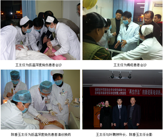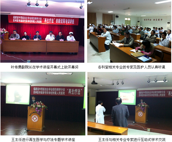 2010年12月30日, 應(yīng)福建省中西醫(yī)結(jié)合學(xué)會(huì)燒傷病學(xué)分會(huì)及應(yīng)泉州醫(yī)學(xué)高等??茖W(xué)校附屬人民醫(yī)院的邀請(qǐng),中國(guó)中西醫(yī)結(jié)合學(xué)會(huì)燒傷專業(yè)委員會(huì)常委、中國(guó)燒傷創(chuàng)瘍雜志常務(wù)編委、北京美寶燒傷創(chuàng)瘍研究所副所長(zhǎng)、臨床研究部主任兼研究員王洪生教授來(lái)到該醫(yī)院進(jìn)行“再生療法在糖尿病足等難愈性創(chuàng)面治療新進(jìn)展”專題講座。