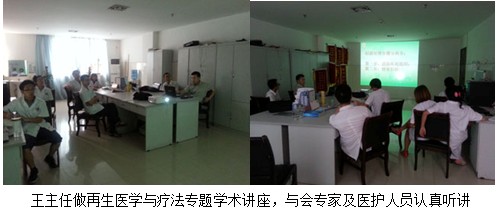講座結(jié)束后,該科室主任及專家、醫(yī)護(hù)人員和王主任一起進(jìn)一步討論了再生醫(yī)學(xué)醫(yī)療技術(shù)的治療要點(diǎn),特別是再生復(fù)原療法在褥瘡、骨科慢性潰瘍、難愈合創(chuàng)面、糖尿病足、斷指再生等創(chuàng)面的治療要點(diǎn)。