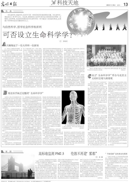 光明日?qǐng)?bào):可否設(shè)立生命科學(xué)學(xué)?