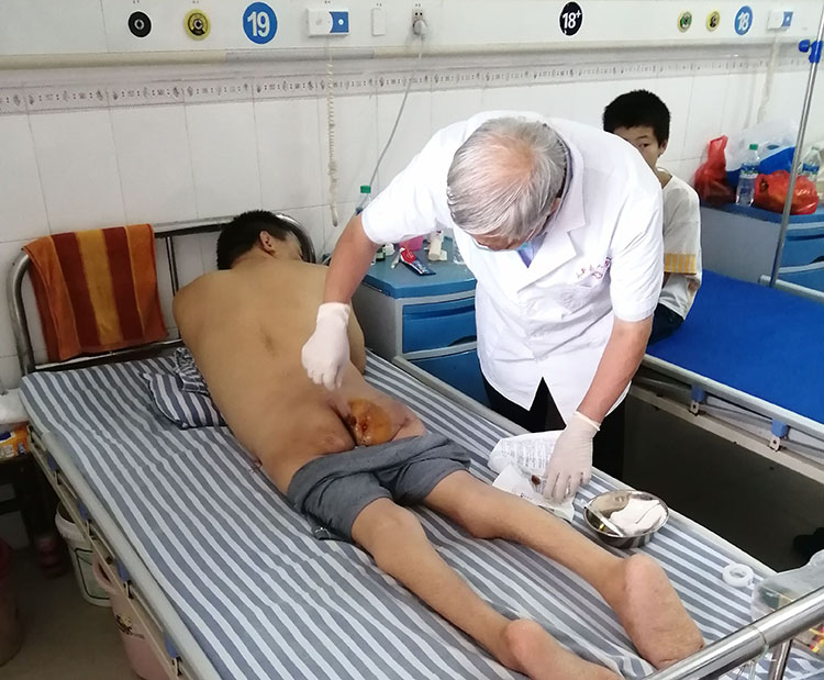 8月11日,北京榮祥再生醫(yī)學研究所副所長、《中國燒傷創(chuàng)瘍雜志》編委金黨軍教授應邀前往江西省吉安市永新縣人民醫(yī)院對一例久治不愈壓瘡患者進行會診,金教授從查看病情到指定治療方案,最后親自示范換藥流程,全程贏得了科室醫(yī)生主任的高度認可。